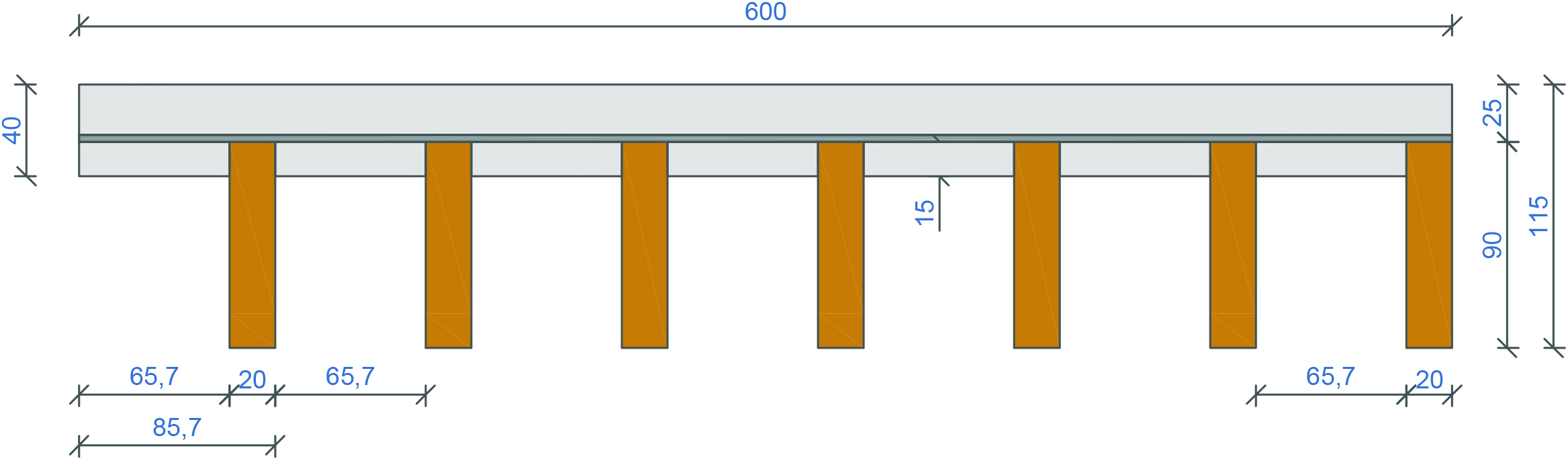 Base material: Real wood: Pine, Larch, Birch, Oak etc. Lath size (wx/hx): 20x90mm Sloted cross bar: 45x35mm+26x35mm No. of blades: 7 Element weight kg/m2: 10,21 Surface: Standard WB coating , oil /wax coating, staining etc. Fire classification: B s1.d0 , EU norm EN 13501-1 Humidity resistance: 70% standard to 95% treated Acoustical treatment: Rockfon Industrial mineral fibre pad 20mm or acoustical fleece 155g/m2 Open area: 80% Suspension: Standard plaster board studs or wood trims - direct mount