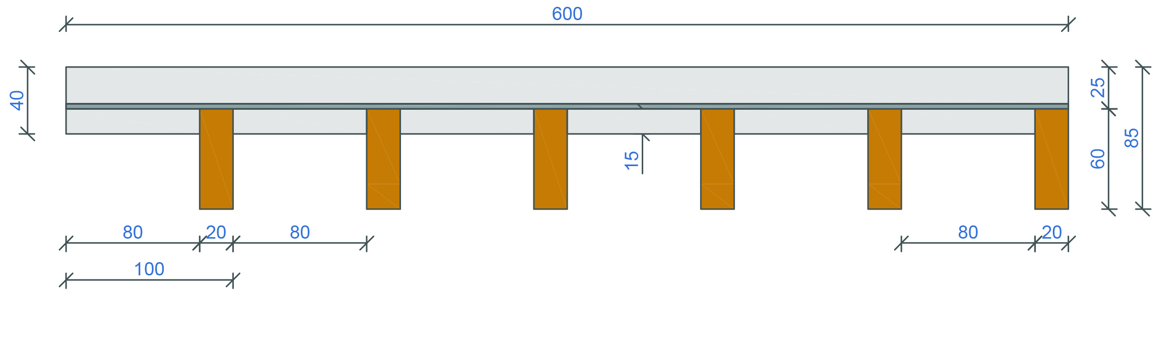 Base material: Real wood: Pine, Larch, Birch, Oak etc. Lath size (wx/hx): 20x60mm Sloted cross bar: 45x35mm+26x35mm No. of blades: 5 Element weight kg/m2: 4,86 Surface: Standard WB coating , oil /wax coating, staining etc. Fire classification: B s1.d0 , EU norm EN 13501- Humidity resistance: 70% standard to 95% treated Acoustical treatment: Rockfon Industrial mineral fibre pad 20mm or acoustical fleece 155g/m2 Open area: 83% Suspension: Standard plaster board studs or wood trims - direct mount