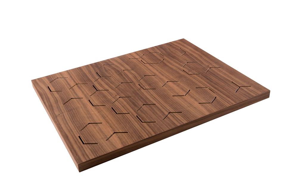 Base material: MDF Panel size: 600x600x24, 600x1200x24, 600x1500x24 Weight kg/m2: 6,9 Surface: melamine lamination , reall wood veneer Surface treatment: Standard WB coating , oil /wax coating, staining etc. Fire classification: up to B s1.d.0 , EU norm EN 13501-1 Humidity resistance: 70% standard to 95% Humidax Acoustical treatment: Integrated Rockfon 20mm mineral fibre pad Open area: 7 -40% Suspension: Various NEXT specific hangers